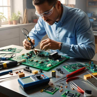 Efetuo diagnóstico e reparação de placas eletrónicas, fontes de alimentação, equipamentos industriais e dispositivos personalizados.